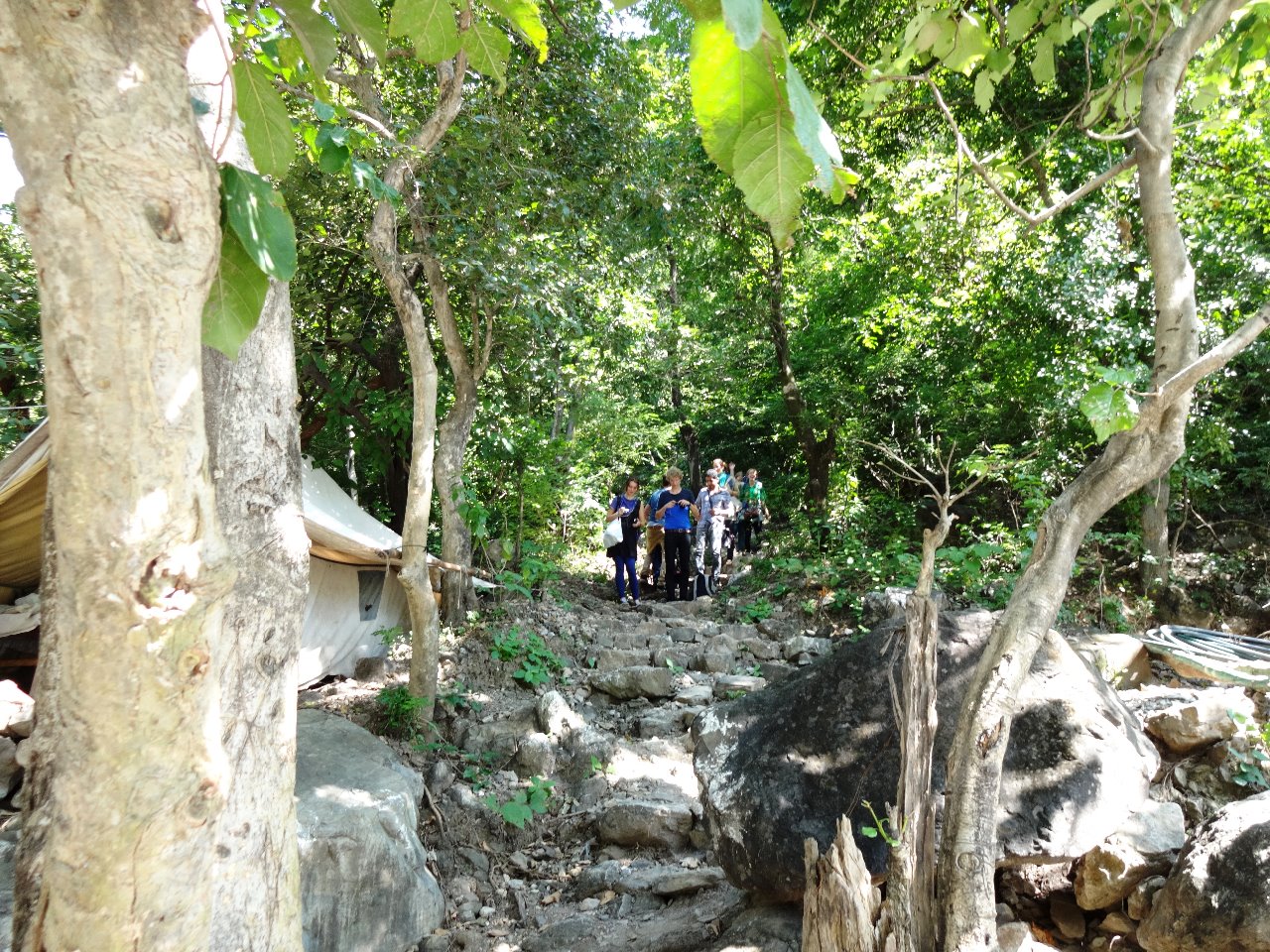 Als Nachmittagsprogram stand dann eine kleine Wanderung zu einem Wasserfall an. Nach einer Klettertour durch den Wald des Himalaya haben sich fast alle von uns unter dem Wasserfall abgekühlt; teils in Badesachen, teils in normalen Sachen (Ich war eine von der schlauen Sorte im Bikini :)).